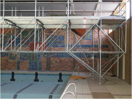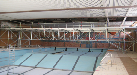 Fahrgerüst über 20 m freitragend Schwimmbad Brühl